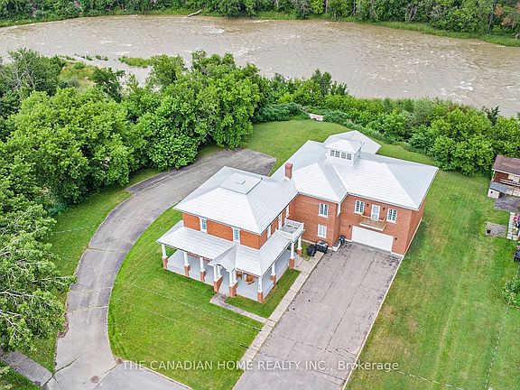 This beautifully updated Century home sits on a prime RIVERFRONT lot along the scenic Nation River. Enjoy stunning views from the rooftop tower and relax on the wraparound veranda.The main floor boasts a bright living room, formal dining room, and a welcoming foyer that can easily double as a home office. Upstairs,, you'll find a spacious layout with 4 bedrooms, including a generous primary suite featuring exposed beams, a private office area, a luxurious ensuite bath, and a cozy whirlpool nook. Soaring ceilings, oversized 6' windows, and elegant crown and base moldings add timeless character throughout.A large addition completed in 1990 includes a massive attached garage (approx. 49' x 36' with 12' ceilings), complete with a lavatory and urinal ideal for RV storage, multiple vehicles, or your dream workshop. A detached shed also offers great space for storage or hosting family gatherings.Upgrades include a durable metal roof and most windows replaced between 20102019. An ultra-efficient boiler and water heater help keep utility costs low.Flooring throughout features rich hardwood and sleek ceramic tile.This one-of-a-kind home offers history, charm, and endless potential all set in a breathtaking riverfront setting!
