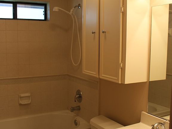 4 bedroom, 3 bath home with 2 master suites. Large living area with cathedral ceiling. Recently updated with granite kitchen counter tops, new cabinets and fresh paint throughout the house. Tiled kitchen floors, wood laminate living area floors, and carpeted bedrooms. Spacious backyard with covered patio, gas hook-up, wired for sound and cable. Beautifully landscaped yard with sprinkler system. New windows, furnace, water heater and freshly painted and ceiling fans.