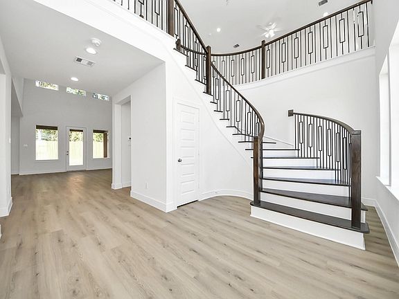 Brand New CUSTOM home in the beautiful golf & lakeside community of Bentwater. This home is a Showstopper. 4 Bedrooms and 3 full bathrooms, 2 of the bedrooms and bathroom are on the first floor. secondary bathroom on 1st floor has a walk in shower. Grand entry with exquisite staircase welcomes you inside, with soaring ceilings. Kitchen with gorgeous white cabinetry, large island with sink, gas cooktop, and stainless appliances and vent. Open plan to the family room with gas log fireplace. Primary suite with tray ceiling, barn door leading into the ensuite bathroom with custom tile inlay in the large shower and free standing tub. Upstairs is a gameroom, 2 bedrooms and the 3rd bathroom . Home has wonderful natural light, custom light fixtures and vinyl plank flooring. Located by a lush greenbelt and NO BACK neighbors. Bentwater offers 24-hr manned gated access, yacht club, 2 pools, dog park, marina, tennis, pickleball, fitness center, park, & 3 golf courses.