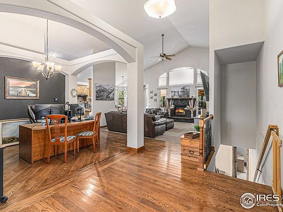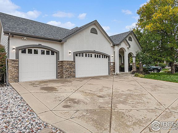 Stunning Former Model Home in Kendall Brook! This beautifully maintained ranch-style home sits on a premier corner lot surrounded by lush landscaping and cedar fencing-truly a must-see in one of Loveland's most desirable neighborhoods! Step inside to experience exceptional craftsmanship throughout, including 8' solid wood doors, rich trim work, and an inviting open floor plan-perfect for entertaining or relaxing by the cozy main-floor fireplace. The gourmet kitchen is a chef's dream, showcasing slab granite countertops, Tharp custom cabinetry, a full tile backsplash, gas range, and built-in oven and microwave. You will love the spacious primary suite featuring a luxurious 5-piece bath and walk in closet. The elegant formal dining room is enhanced by graceful arches and lighted plant ledges, adding charm and character. A versatile main-floor bedroom with French doors-perfect for a guest room, office, or quiet workspace. The finished basement with 9' ceilings expands your living space with two large bedrooms, a generous rec room, laundry sink, and an additional utility sink in the unfinished storage area-offering both versatility and functionality. Step outside to a beautifully landscaped yard featuring a poured concrete patio and a new custom cedar pergola-ideal for outdoor relaxation. Additional highlights include two stone gas fireplaces, an insulated and finished garage with epoxy flooring, automatic openers and keypad entry. All major components- HVAC system -Tankless water heater, Roof and exterior paint are newer for peace of mind. Just steps from neighborhood parks and bike trails and minutes from Lake Loveland and Sculpture Park, this prime location lets you experience the best of Colorado living-outdoor recreation, natural beauty, and everyday convenience. Move-in ready and perfectly blending style, comfort, and quality craftsmanship, this Kendall Brook gem is ready for its new owner!