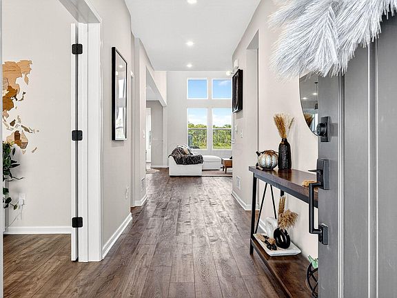 Welcome to this stunning, newer-built 5-level split located in desirable Sugar Farms within the Hilliard School District. Completed in 2023, this 4-bedroom, 3.5-bath home offers over 3,700 square feet of well-designed living space and a 3-car garage. The property backs to a pond with no rear neighbors, providing both privacy and picturesque views. The main level features an inviting open-concept layout with abundant natural light, a wall of windows, and a recently upgraded fireplace in the living room as the focal point. The upgraded kitchen includes a large center island with seating, a walk-in pantry and eat-in area that opens to a bright sunroom—perfect for morning coffee, dining or sitting room. A first-floor den provides the ideal space for a home office. There is a secondary work-space located on the 1st floor off the living room. The lower levels offer two expansive living areas, ideal for entertaining or relaxation, along with a dedicated workout room. The master suite enjoys its own floor. Upstairs, you'll find three additional bedrooms—two connected by a Jack and Jill bath and one with its own private ensuite. Throughout the home, you'll appreciate updated lighting, custom accent walls, and thoughtful finishes. The fenced backyard offers plenty of space to relax and play. New sod in front yard. Home is located within walking distance of the community park and playground. Move-in ready. Excellent location!