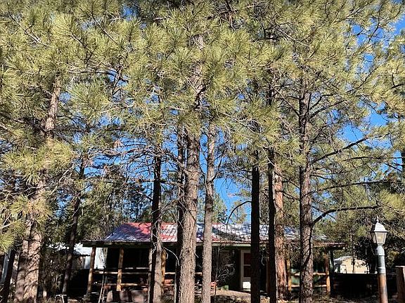 Cozy cabin in the woods. Towering ponderosa pines is the perfect setting for your mountain getaway. The large covered porch has so much room for entertaining. The ranch home offers an open floor plan with large breakfast bar and wood stove. Spacious eat in kitchen with plenty of cabinets and work space. Remarkable move in ready home with 3 bedrooms and full bath and inside laundry. The yard provides fenced area for kids and pets, and plenty of parking. The shed is perfect for outdoor supplies. Private feel and an excellent getaway or full time living.