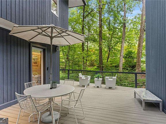 Lake Rabun Views Intown with the MCM Style home in the sought-after Briarcliff Woods Subdivision. The home is convenient to Emory University, Buckhead Shopping, Decatur, and just ten minutes from Midtown. This three-level Mid- Century Modern home offers a rare combination of privacy, luxury, and functionality. Nestled within the Sagamore Hills Elementary School District, this 4- bedroom, 3.5-bathroom residence sits on a serene half-acre lot and features every imaginable upgrade. Walls of windows throughout fill the home with natural light while showcasing tranquil views of the surrounding nature. Enjoy music throughout the home and outdoors with the built-in sound system, creating the perfect setting for both intimate gatherings and lively entertaining. From the climate-controlled garage, step directly into the walk-in level kitchen or ascend the exterior stairs to a 600-square-foot studio apartment above the garage. This private space includes a studio bedroom, bathroom, and additional area ideal for an artist's studio or a remote office. The entryway features a twenty-foot double foyer with skylights that lead into a chef's kitchen, complete with a Subzero refrigerator, Wolf oven and microwave, a generous island, and an eat-in breakfast nook overlooking the wooded front lot. The open dining room is surrounded by windows and flows seamlessly into the terrace level below. On the terrace level, soaring twenty-foot ceilings and multi-level living rooms create an open yet defined layout-ideal for both entertaining and family gatherings. One wing of this level offers a light-filled office retreat surrounded by windows, while the opposite wing features a breezeway that leads past a half bath with sauna and onward to a private gym with additional storage. The breezeway itself provides a quiet spot to relax, enhanced by the peaceful sounds of the adjacent stream or pond. Traverse the staircase from the terrace level to the upper floor, where skylights guide the way to a 3-bedroom, 2.5-bathroom layout that includes the spacious primary suite and two secondary bedrooms. The home is the perfect blend of suburban tranquility with all the conveniences of intown living.
