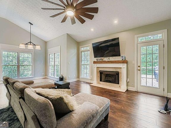 Welcome to this beautifully designed 2-story home with 4 bedrooms plus large loft, a finished basement in the highly sought-after Buford City School District! Perfectly situated on a cul-de-sac lot backing up to U.S. Army Corps of Engineers property along Lake Lanier, this residence offers the perfect blend of comfort, elegance, and location. Step inside to discover an open-concept main level filled with natural light and modern finishes. The spacious living room features laminate wood flooring, and a cozy fireplace, seamlessly flowing into the updated kitchen with quartz countertops, an impressive 8-foot quartz island, stainless steel appliances, and ample storage pantry and cabinetry. The adjacent living area offers access to a large private deck, ideal for entertaining or relaxing while enjoying the serene, wooded backdrop. The primary suite on the main level is a true retreat with French doors offering private deck access; boasting a luxurious ensuite bath with a standing shower, garden tub, double sink, and a generous walk-in closet. Also on the main floor are a convenient half bath, laundry room, and a private office / flex room with custom floor-to-ceiling built-in storage. Upstairs, you'll find two additional spacious bedrooms, a full bath, and an open loft area that's perfect for a playroom, reading nook, or media room. The finished basement offers incredible flexibility-perfect for an in-law suite, teen retreat, or rental opportunity. It features a bedroom with an oversized walk-in closet, full bath, washer/dryer connections, and a large flex/media room with plumbing already in place for a kitchen install-so much potential! Enjoy easy access to Lake Lanier, public boat ramps, vacation cabins, and upscale RV sites, all just minutes away. Plus, downtown Buford's dining, shopping, and entertainment are right around the corner. This rare property combines modern style, natural beauty, and a top-tier school district-a true gem you won't want to miss!