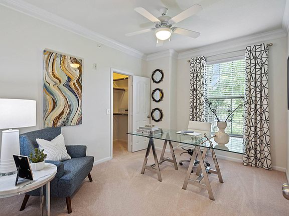 - Exterior features: Business Center, Complementary Hospitality Bar, Decorative Crown Molding, Expansive Closets with Custom Wood Shelving, Expansive Private Patios and Balconies, Game Room, Gates and Access Controlled Community, Level 2 EV Outlets in select units*, Level 2 EV charging outlet in select units*, On-Site Maintenance, On-Site Management, Package Receiving, Preferred Employer Program*, SMART Home Devices, Short Term Lease, Spruce*, Stainless Steel Kitchen Appliances Packages, TV Lounge, View Type: Greenbelt and Scenic Views