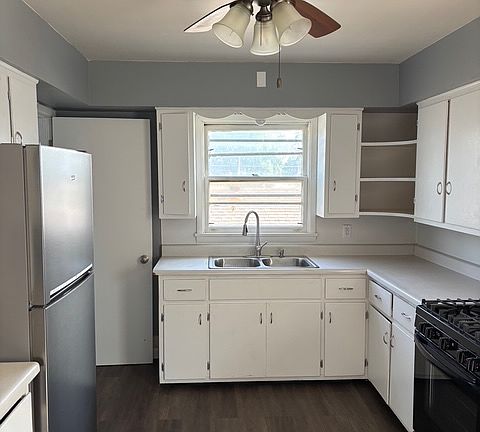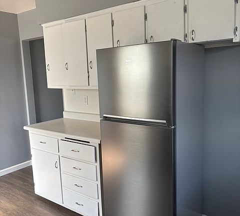 Step into this newly renovated 2-bedroom, 1-bath upper duplex offering 1,000 sq. ft. of stylish comfort. Featuring sleek grey walls, crisp white ceilings, and dark glossy hardwood floors, this home is full of contemporary charm. The bright kitchen boasts white cabinets with silver hardware, a brand-new black gas stove, and a stainless steel refrigerator. The remodeled bathroom mirrors the home's modern design with clean finishes and neutral tones. Enjoy your morning coffee or unwind in the evening on your private balcony overlooking the neighborhood. This move-in ready space combines comfort, style, and convenience perfect for your next home.