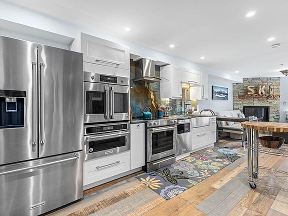 Gourmet kitchenDramatic stone countersPremium appliancesCozy stone fireplaceRadiant in floor heatingPrivate walk-out patioQuiet courtyard