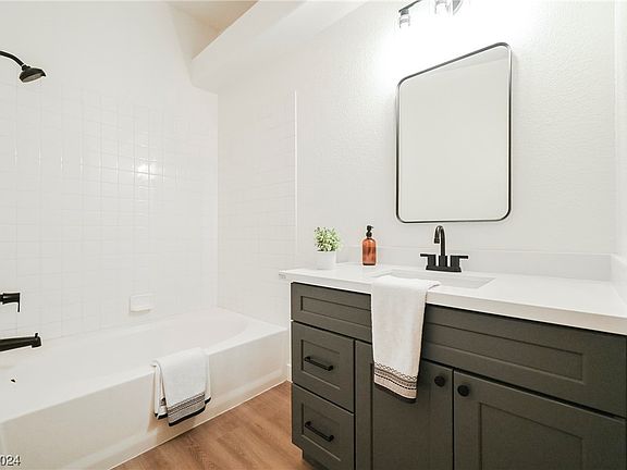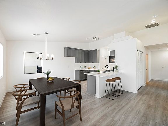 Designer-reimagined 3 bedroom townhome in exclusive gated community! This spectacular home features custom finishes throughout including bespoke grey shaker cabinetry, stylish white quartz counters, modern black fixture and hardware package, upgraded LVP flooring and brand new SS appliance package. The floor plan features high ceilings, open kitchen/living space, in-unit laundry, attached two car garage and 3 spacious bedrooms with 2 full, modern baths. Ideally situated in gated community with resort-style pool area, ample parking and the stunning silhouette of Sunrise Mountain to the east, this turnkey dream home won't last!