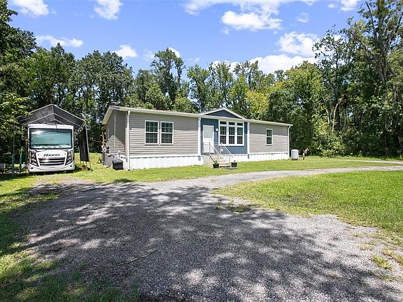Discover the perfect blend of comfort and country charm in this private New Smyrna Beach retreat on 2.29 ACRES! This Jacobsen Homes model modular home, built in 2018 and first occupied in 2019, feels like new and offers a spacious layout designed for modern living. Inside, you’ll find a large open-concept living, family, and dining area, anchored by a chef’s kitchen with an oversized island and a walk-through pantry that’s as functional as it is impressive. The primary suite features a spa-style en-suite with a walk-in shower, ample storage, and plenty of space to unwind. Step outside to enjoy the expansive deck with a hot tub—the perfect spot for relaxation or entertaining. The property also includes a pole barn (25’x35’x12’) with RV parking, a workshop (24’x35’x11’), and an additional storage covering (22’x20’), offering endless room for hobbies, tools, and equipment. Two fenced paddocks make it ideal for animals or those seeking a mini-farm agricultural lifestyle—all while being just minutes from the best of New Smyrna Beach, intercostal waters with public boat ramp, and the East Central Regional Rail Trail for even more outdoor fun!