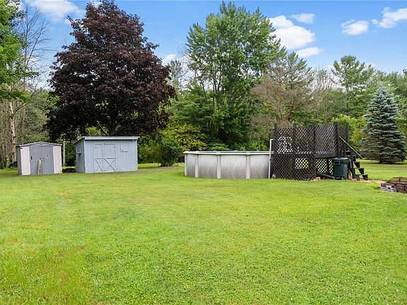 This updated ranch has so much to offer! The deep yard offers lots of green space! 2/3 bedrooms (with 5 ft and 8 foot closets!) LARGE laundry room, updated kitchen has NEWER APPLIANCES and NEW SOFT CLOSE cabinets in today’s deep, rich color with rubbed bronze drawer pulls! All NEW resilient flooring that’s been super sealed! All new paint, NEW VINYL siding, NEW METAL ROOF with baffles, NEWER ELECTRIC SERVICE, NEW drywall, NEW INSULATION, newer DRIVEWAY has been freshly SEALED! The FRENCH DRAIN perimeter is a must have for keeping a solid foundation! The rear deck is a great space for all those POOL PARTIES! Above ground pool has its own deck and the liner is less than TWO YEARS! All this and THREE SHEDS! You can turn one into a “SHE SHED or MAN CAVE!”