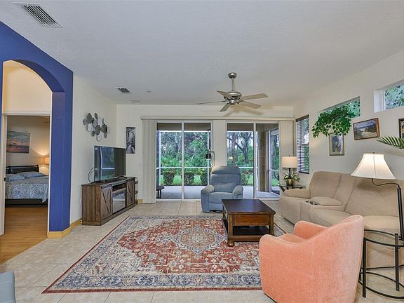 Step into this beautifully maintained, FULLY FURNISHED 2-bedroom, 2-bath home designed for both comfort and convenience. A welcoming screened front entry opens to a spacious Great Room with tile flooring that flows seamlessly into the kitchen, dining room and baths, while warm laminate flooring in the bedrooms adds a cozy touch. The kitchen features a gas range for the home chef, complemented by a gas water heater and a newly installed state-of-the-art A/C and heat pump furnace (2025) with UV light for mold control—ensuring efficiency and peace of mind. Enjoy the Florida lifestyle on your expanded screened lanai, perfect for relaxing mornings or evening gatherings. The 2-car garage with sliding screens adds versatility, and the included 4-seater golf cart with newer tires and batteries (2023), makes community living a breeze. This charming home truly offers the best of easy living and modern upgrades—all ready for you to move in and start enjoying today. This Condo is ALL INCLUSIVE as the COA fee includes an impressive list of amenities such as 24-hour guard, Cable TV, Internet, Pest Control, the community pools, exterior maintenance to include painting and roof replacement, lawn maintenance, trimming of bushes and trees, all water inside & out, recreational facilities, and sewer. Located just south of Tampa, Kings Point is a resort-style active retirement community. Gated, with two beautiful clubhouses, 6 heated pools, an 850-seat theater, an elegant spa, tennis courts, golf course, hot tubs, saunas, billiards, several pickleball courts, two state-of-the-art fitness centers, and much, much more. Dozens of social and sports clubs will keep you entertained year-round. This maintenance-free community allows access to doctors, hospitals, shopping, banking, restaurants, and virtually everything you will ever need via a golf cart. Kings Point even offers a free transportation system. Centrally located minutes from an assortment of spectacular beaches, world class fishing, Tampa's convenient cruise port, and Disney World, Kings Point is an award-winning community and one of Florida's best places to live!