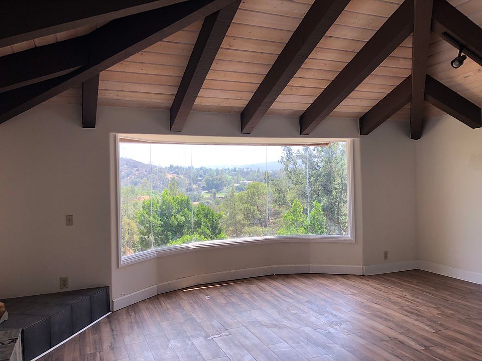 Sitting on nearly an acre lot, this 5 room 2.5 bath home is situation in a gated community. This house has a 3 car garage, with uncovered driveway parking for an additional 5 cars. The home also features a resort style pool with spa. The kitchen is open and living room + kitchen has mountain views.