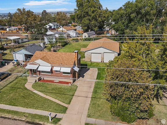 Welcome to this charming all brick rambler. Inside you will find a modern kit. w/ceramic tile flooring, solid wood cabinets, gas stove and frig. included. Updated flooring & paint through-out, 2nd family room down and several built-in. Don't miss the detached, double deep 28'x40' 4-car garage with an 8' & 9' door, plenty of room for everything. This home has lower utility bills with updated 95% furnace/AC (Trane) in 2022, hot water heater, updated modern windows (vinyl double pane) and new roof in 2019. Like new carpet throughout, all high-density nylon, fresh paint, and full sprinkler system. Convenient to a large park, elem. school and shopping down the road. Stop by and see this one today!!