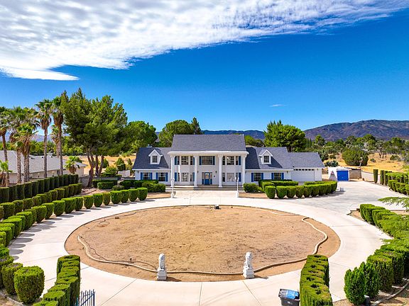 WELCOME to the Iconic Colonial on Avenue N! This stunning West Palmdale Estate is located in White Fence Farms and situated on 2.5 acres! The home offers 5 bedrooms, 3.5 baths and almost 4,500 square feet of living space! Drive thru your private gate with an automatic opener and up the tree-lined driveway to an elevated GRAND entry with 20ft columns! The foyer is highlighted by the main staircase, a tall ceiling and a beautiful chandelier. The formal living room and dining rooms are both adorned with elegant trim and light fixtures. The center island kitchen has a built-in Sub-Zero refrigerator, double oven and a butler's pantry with an additional sink. The family room offers a wood burning stove with brick accent, beautiful crown molding, a wet bar and two sliding glass doors that lead to the back patio. Upgraded wood-look tile flooring throughout the lower level. TWO-STORY MASTER SUITE with cathedral ceiling, walk-in closet, jacuzzi tub and a cozy loft with a wood burning stove. MASSIVE bonus room with skylights and TONS of storage! HUGE laundry room with plenty of cabinet space PLUS a mudroom that leads to one of the two garages for a total of FOUR cars! The backyard is an entertainer's delight with a sparkling pool & spa with solar heating element, built-in BBQ, large covered patio, separate pergola, artificial turf and mature shade trees. The rear portion of the property is ready for your farm with a fenced in chicken coop, animal pen with shade structure, raised garden beds plumbed with irrigation and plenty of room for horses! For sale by ORIGINAL OWNER!!!