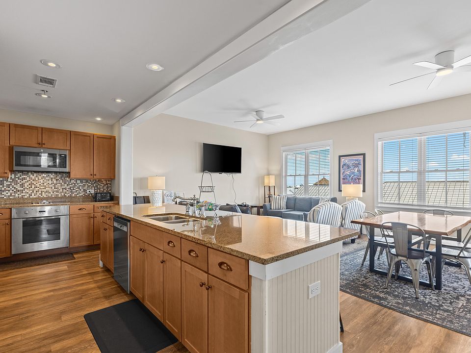 Rare opportunity to own a top floor corner unit with Gulf views and bonus bunk room. This is the largest floor plan in the community and does not come up for sale often. With 3 bedrooms and 3 baths this 1635 sq. ft. comes fully furnished and rental ready with a versatile bunk room with quadruple bunks. Updates include newer flooring, new dishwasher, new fans, and more. Located in the highly sought-after community of Blue Mountain Beach. Redfish Village amenities includes a BBQ grill area, two heated pools, a fitness center, playground, theater, library, scenic lake dock, and convenient private deeded beach access with complimentary shuttle service. Plus, enjoy the convenience of a deeded covered parking space.