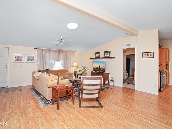 Lots of outdoor living, super clean home, split bedrooms, eat-in kitchen and formal dining area, Chefs kitchen Gas range is less than 5 years old, water heater was replaced in 2022, HVAC 2012, and water softener is 2022, screened in Arizona Room allows time outdoors, mature pine trees provide an umbrella of shade, storage room, plenty of parking spaces, walk to the community pool, club house pickle ball, golf, yoga and so much more. The furniture can convey with the home or be removed.