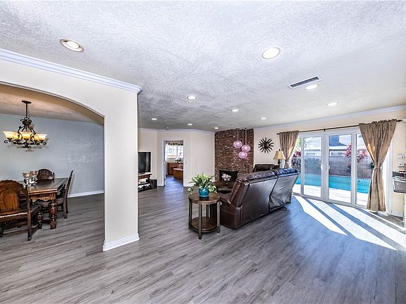 This custom-designed unique home was beautifully remodeled and tastefully expanded in 2005 and It has lots of newer features that you can find in a home built after 2000. The oversized central A/C & heater was installed in 2021 with Nest Thermostat. Newer Duct & installation for HVAC system installed in 2005. Solar system installed in 2015 & it saves you $$$$ in your electric bills. Brand new Vinyl flooring through. The roof, a sparkling pool, & electrical panels were installed in 2005. Underground wiring to the house and no wires over the pool. Whole house water softener. Recessed lighting, fireplace, double pane windows & sliding patio door. The spacious kitchen with a garden window has a lot of cabinets with Pull-out Shelves in lower cabinets and decorative glass door on top. The large master bathroom with shower & jetted tub has Travertine walls & flooring, Double sink vanity and 2 spacious closets for him and her.