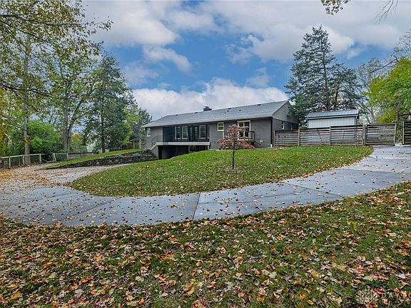 Situated on nearly an acre in a sought-after West Kettering neighborhood, this fully remodeled mid-century ranch delivers the kind of layout and design people want right now. Every space has been rethought and elevated — light, clean lines, and smart use of every square foot. The front entry opens into a spacious great room with a fireplace, flowing into a formal dining room and a flexible office/den. Large windows and French doors pull in natural light and frame views of the private backyard. Step out onto the balcony and you get this unexpected “vacation tucked at home” feeling — quiet, green, and elevated.The kitchen is a showpiece, outfitted with Solid wood cabinetry, stainless appliances, a large center island, and quartz counters throughout. Tasteful engineered floors and a calm, neutral palette carry across both levels.The main floor offers three bedrooms, including a true primary suite with its own deck overlooking the yard, plus a second full bath. An architectural aluminum-cabled staircase leads to the walkout lower level, where you’ll find a generous family room, half bath, and a laundry room with plenty of storage.