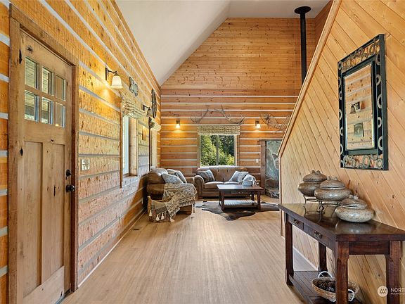 GORGEOUS GOAT PEAK CABIN HOME. Enjoy mountain views, visiting deer from your wraparound porch & quiet starry nights around the firepit. Private, picturesque setting with recreation & amenities a short drive away. Step into a world of custom craftsmanship & rustic elegance at this one-of-a-kind home, perfectly set on 2.52 flat acres in desirable Goat Peak. From the hand-planed siding & log cabin charm to the stunning Montana Flagstone fireplace, copper farm sink & clawfoot tub, this tasteful home is designed to stand out. New plank floors, carpet & paint. Large garage/shop, chicken coop. Primary bed & ensuite, large kitchen/dining area, loft for work or casual living space. Perfect for gardeners, equestrians, homesteaders & outdoorsy folks!