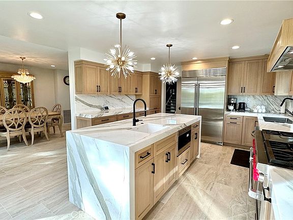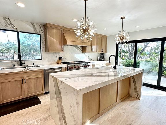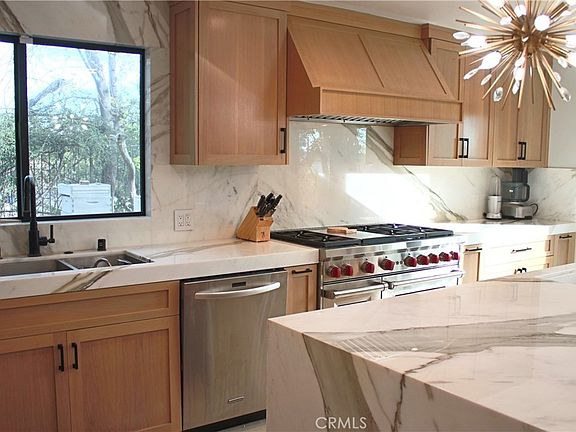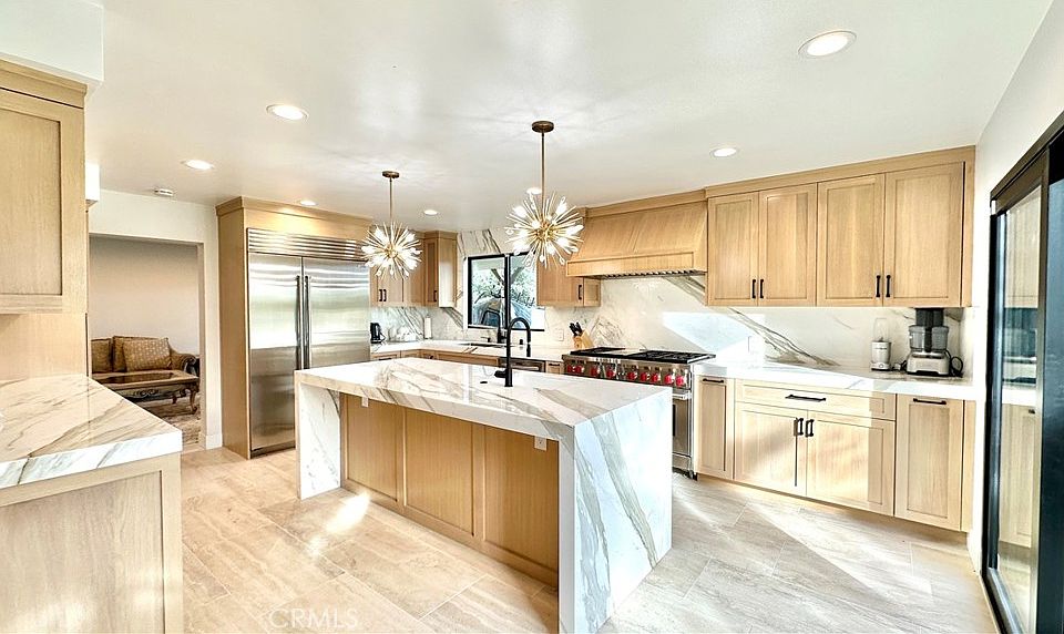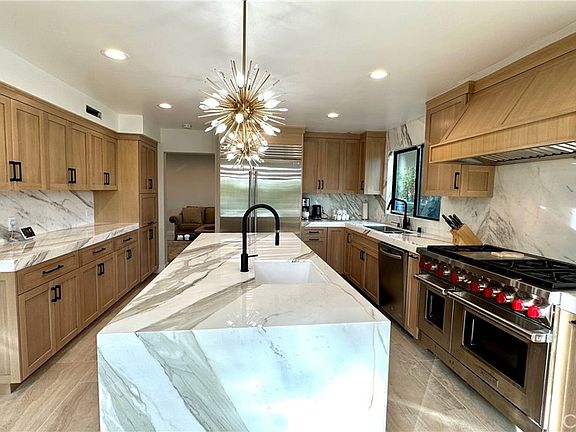 So Much for So Little – JUMP on this Opportunity before it passes you by! Please don’t curb appraise or you may miss out! Gorgeously remodeled 5 Bedroom, 3 Bath home offering 3,253 Sq. Ft. of living space on an 11,661 lot on a great cul-de-sac street in a fabulous pocket of homes. The interior features high end amenities and upgrades including a dream kitchen with quartz countertops, and expansive quartz waterfall center island, quality cabinetry with pull-outs, and stainless steel appliances including a Wolf Range and a Sub Zero built-in refrigerator, additionally offered is a spacious formal dining area, a convenient family room, plus wet bar. There are soaring ceilings in the living room with a dramatic floor to ceiling marble fireplace and two story windows for beautiful natural lighting. Dual pane windows, custom designer carpeting, marble and stone flooring throughout, plus smooth ceilings and recessed lighting. All the bathrooms have been totally redone and have quartz counters and quality fixtures. One bedroom and bath on the main level, and 4 bedrooms plus 2 baths upstairs. The primary suite is spacious and offers a sitting area, his & her walk-in closets, and a private en suite bathroom with dual sinks, a custom walk-in shower with dual shower heads and clear glass door, plus a separate spa tub – it’s a perfect place for relaxation after a long day. Secondary bedrooms are all great sized and have custom closet organizers. Plus there is energy saving Solar that is a lease. The exterior is the last thing to do and just needs some TLC – Come make this one your Dream Home! Easy access to shopping and dining at the Vineyards at Porter Ranch, Trader Joes, freeway and more!