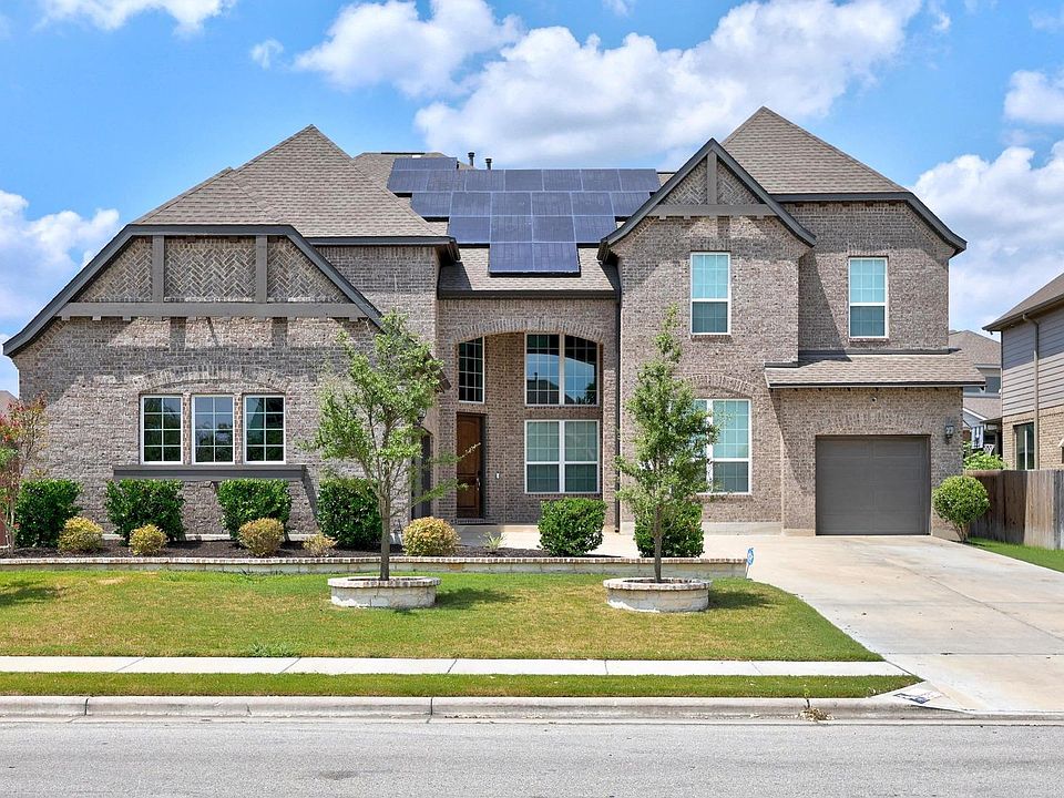 With full price offer seller and preferred lender will give buyer up to $17,750 in buyer concessions. Call agent for details. Welcome to 20500 Fairleaf Street, a stunning two-story Sandpiper floor plan perfectly positioned on a corner lot in Pflugerville’s premier Blackhawk community. From the moment you step inside, a grand foyer with soaring ceilings and a sweeping circular staircase sets the stage for the home’s timeless elegance. Every inch of this 4,900+ sq ft residence has been thoughtfully designed for comfort, connection, and style. The open-concept living area is anchored by a striking fireplace and natural light that pours through tall windows. The gourmet kitchen is a chef’s dream, showcasing sleek quartz countertops, an oversized island, stainless steel appliances, a butler’s pantry, and abundant cabinetry—all blending modern luxury with everyday function. Downstairs, a private office offers space for productivity, while the expansive laundry/utility room provides incredible storage and workspace. Upstairs, you’ll find a spacious game room and dedicated media room, ideal for movie nights or entertaining guests. The primary retreat on the main level is a true sanctuary, featuring a spa-inspired bath with dual vanities, soaking tub, walk-in shower, and a custom-designed master closet with built-ins for effortless organization and elegance. Over $200,000 in upgrades elevate this home far beyond builder standard—highlighted by a custom wine cellar, epoxy garage floors, whole-house generator, solar panels, outdoor kitchen, fire pit, turf yard, surround sound, and smart-home integration with Nest cameras and energy-efficient features. Enjoy outdoor living year-round under the extended covered patio with lighting, ceiling fans, and TV hookup—perfect for dining al fresco or relaxing by the fire. The three-car garage offers ample parking and storage, completing the home’s perfect blend of luxury and practicality.Residents of Blackhawk enjoy resort-style amenities