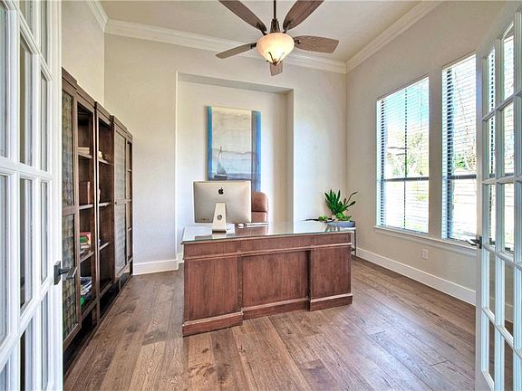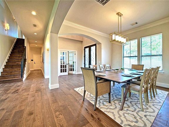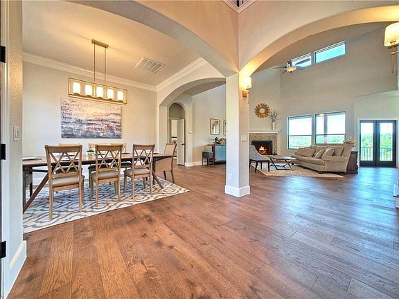 Luxury awaits you in this incredible 5 BR / 4.5 BA home with pool, spa and much more! French doors open to a spacious home office. Wide plank wood floors throughout! Updated kitchen boasts granite counters, center prep island with cooktop, maple cabinets. Entertain in the living room with soaring double height ceilings, fireplace and entrance to balcony with miles of Hill Country views. Expansive primary bedroom with tray ceilings, gas fireplace with private access to balcony overlooking greenbelt and beyond. Expansive walk-in closet and incredible ensuite master bath. Upstairs there are 3 more bedrooms, 2 full baths and an amazing bonus room perfect for movie night. Downstairs, there's a spacious bedroom, adjacent full bath and flex area that makes the ideal space for a home gym. Outside, you'll find a covered deck, patio, pool, spa with water feature and outdoor kitchen. Winding stairs from the patio lead to a gently sloping yard with fire pit -- perfect for chilly nights. Residents enjoy exclusive access to community parks and boat ramp that leads to Lake Travis! The area is served by the award-winning Lake Travis Independent School District and is just minutes to upscale shopping and fine dining at the Hill Country Galleria with easy access to downtown Austin.