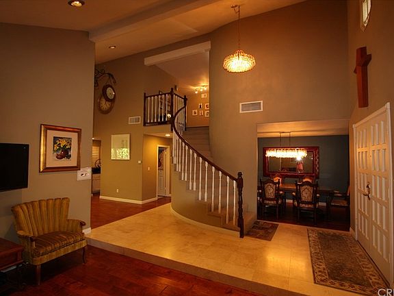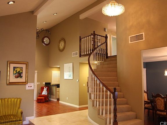 Immaculate and spacious two story home located in Chatsworth. Floor plan offers 4 large bedrooms and 3 bathrooms. Huge master suite with private remodeled bathroom. Spacious family room with romantic fireplace, formal dining room, living room, wet bar and indoor laundry room. Kitchen with bay window, breakfast nook area and patio doors that lead to a lovely serene yard. 3 car garage and one space is converted to storage room. Perfectionist owner lovingly cared for this home with numerous upgrades throughout and it shows. Smooth ceilings and recessed lighting make this house feel light, bright, and open. The remodeled custom kitchen with granite countertops and newer top of the line stainless steel appliances with newer cabinets. Tasteful interior paint and the magnificent shiny engineer wood flooring in LR,DR and entire rooms in Upstairs. Travertine floor in entry, kitchen and upgraded bathrooms. Dual pane windows and wooden plantation shutters give this home a classy and comfortable feel. Pride of ownership!