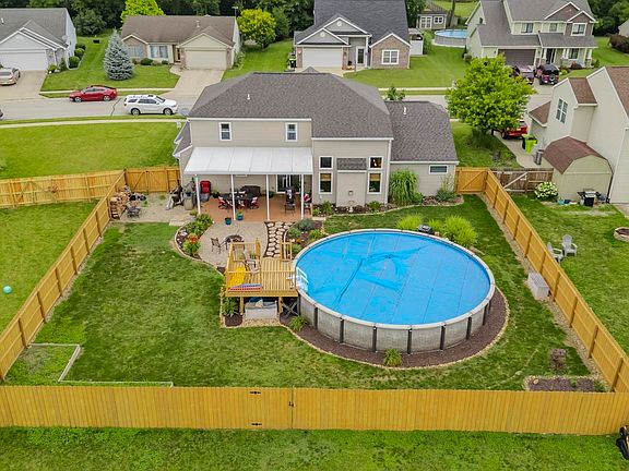WOW factor as soon as you step out of the car! This home is truly one of the best and shows pride of ownership! The sellers have spared no expenses here! The front drive leads you to a redone exterior with new windows and new painted cement board siding with brick accents and cozy covered front porch. All new patio doors out the back go to the 14x24 covered patio that follow to the 30ft above ground pool that is heated by natural gas all beautifully landscaped with a new privacy fence. The kitchen has fresh white cabinets with new counter tops, sink, backsplash, walk in pantry and comes fully equipped with appliances. All new laminate flooring and lighting in the kitchen, living, dining areas. Open concept kitchen/great room make a great area for entertaining while enjoying the coziness and calmness of the fireplace in the evenings. Formal entry way, open staircase opens to the 2nd floor family room. Main floor ensuite with full bath and walk in closet. Move and unpack your bags!