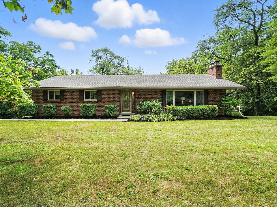 Multiple Offers Received-Submit your Highest and Best by 9pm Sunday 7/27/25**Hillside custom-built brick ranch on 2 (+/-) acres! Three bedrooms, 2 full baths with picturesque views reminiscent of Hocking County. The unique setting boasts rolling vistas and a wooded ravine, creating a one-of-a-kind ambiance. A winding driveway leads to this beautifully updated residence, featuring a new roof (2023), state-of-the-art water softener system (2025) and newer triple-pane windows, HVAC, and a renovated kitchen and bathrooms! Additional amenities include hardwood floors, whole house attic fan, wood burning fireplace and much more! Sale is contingent on county approval of lot split. See A2A remarks