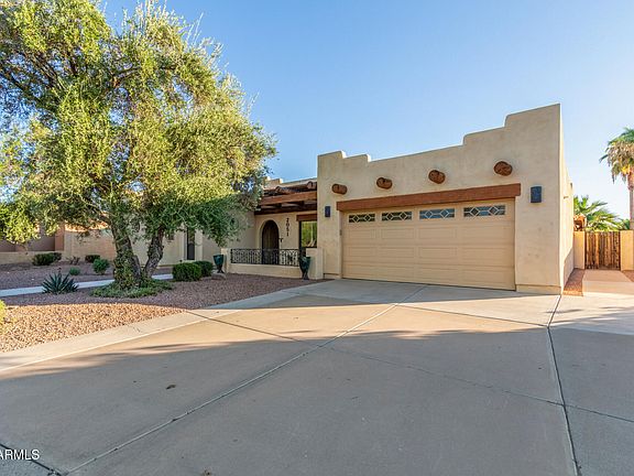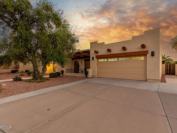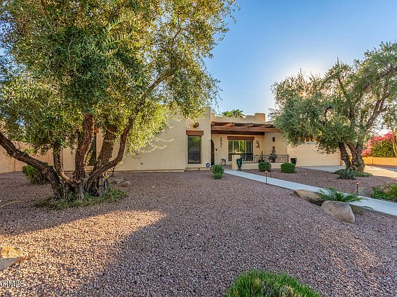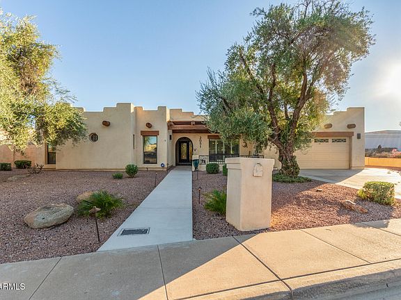 Your dream home awaits! Beautiful Santa-Fe style home showcases a desert landscape and patio! The spacious interior boasts an inviting living/dining room, tile flooring in high traffic areas w/wood floors in the right places, and a den great for work or play. The bright family room has a wood-burning fireplace, adding warmth & comfort to the ambiance. The kitchen features staggered cabinets, built-in appliances, granite counters, & a 2-tier island with breakfast bar. The main suite hosts a walk-in closet and an elegant bathroom with dual sinks, a tub & a spacious shower. The 2.5 car garage has built-in cabinetry & a workbench. The fabulous backyard is an entertainer's dream offering a built-in BBQ, a spa, and a pool. This gem is the perfect blend of comfort, style, & convenience! Act now