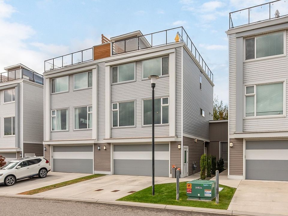 Welcome to the Elkridge community! This stunning townhome features a contemporary open-concept space with 9 ft ceilings in the main living area and oversized windows allowing natural light in. There's both a Private Fenced Safe Backyard PLUS a 540 sq ft ROOFTOP PATIO offering panoramic views of the mountains & Mission Hill Estate Winery. Two (2) very spacious and Completely SEPARATE PRIMARY BEDROOMS both with their own Ensuite Bathrooms and Walk in Closets. Additionally there's a 3rd room you can use for an office or storage. The kitchen has an earthy modern twist featuring high gloss easy clean white and driftwood tone cabinetry, quartz counter tops, stainless steel appliances and pantry. Walk straight out to the patio from the kitchen into the fully fenced backyard. Easy in and out for for barbequing, small garden, pets, kids and ultimately privacy. Double garage with ample storage plus 2 cars can park in the driveway. Laundry in entry and Garage door access into home. Fantastic convenient location just minutes to the lake, beaches, all shopping, schools, golf, restaurants, award winning wineries - you name it! 2 Pets allowed with no size restriction. Rentals allowed. NO Property Transfer Tax. No lease fees. Strata fee is only $275.50 a month. CMHC approved development. The lease is pre paid until 2109. This is a great family friendly community to become a part of. Let's go!