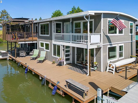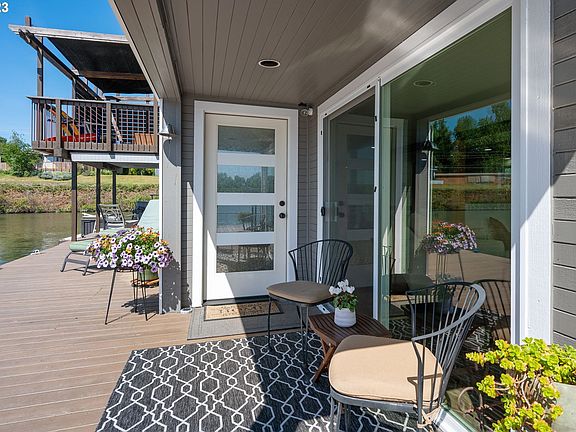 This premium end slip with SW sunset and river views houses one of Portland's most historic floating homes! Recently completely renovated from the studs out. Engineered, Architect Designed, custom finished with period features integrated. Newer roof, mini split with 5 heads, tankless water heater, float is 4! Custom kitchen w/ island and black stainless appliances. Loads of deck space w/ balcony off primary and large upper view deck. All new windows, doors, millwork, fixtures, etc. Layout maximizes views. 3 bed / 3 bath. 270sf storage room with roll up door. Turn key home with all the space you need and most importantly...NO FLOAT REPAIRS REQUIRED! End of pier privacy, boat lift and floating garden approved for west end.
