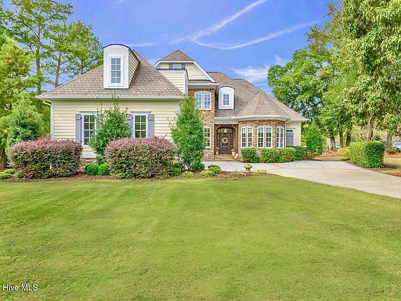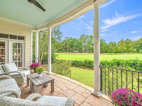 Set along the 13th Green of the Dye Golf Course in Landfall, this stunning 5-bedroom, 5-bath executive home blends timeless elegance with modern luxury. Tucked behind the Eastwood Road gate, its prime location offers a front-row seat to golf tournaments and an active coastal lifestyle—bikeable to Wrightsville Beach and boating, with Lumina Station and Mayfaire's boutiques and dining just moments away.