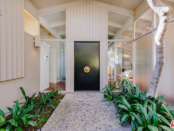 Priced to sell! Mid-century jewel in lower Outpost. Gated courtyard garden entry. Great period architecture elements. Loft-like living room w/ vaulted wood ceilings, parquet floors, interior stone wall and central courtyard overlooking private pool. Large open kitchen w/ center island. Cozy media room and 2 master bedroom suites.