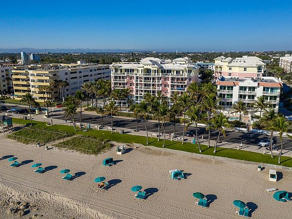 Two story Caribbean inspired. Enjoy luxury living in beach front Ocean Plaza! Deerfield Beach is rated one of the top 10 beaches in the world. This unit has a formal dining room, island style kitchen, guest powder room, and spacious family room that opens to a private walled courtyard. Private garage as well. This unit is available until October 11, 2021, so if you're in need of a short term rental, this is perfect!