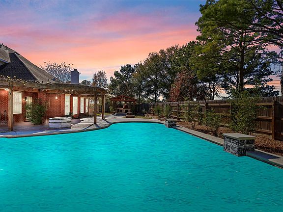 RECENT ROOF! Stunning 4-Bedroom Home with Saltwater Pool,Outdoor Kitchen,Whole Home Water Softener & Filtration system! Well maintained two-story home located in a cul-de-sac has 4 bedrooms,2.5 bathrooms,formal dining,and gameroom.Primary suite conveniently located on the main floor.The en-suite bathroom has double vanities,a separate shower,and a luxurious jetted tub.High ceilings in the home enhance the open,airy feel.Upstairs,you'll find a generously sized game room great for a playroom,media space,or home office.Three bedrooms with nicely sized closets and a second bathroom with dual sinks are also up.The backyard is a private oasis with no back neighbors,a saltwater pool,three large patios,and a custom brick pizza oven and smoker — ideal for outdoor gatherings!Garage features a deep utility sink great for heavy duty tasks.Located in a master planned community with easy access to local amenities.