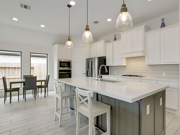 Get ready to fall in love—this showstopping Perry Home has it all—water views, smart design & dreamy outdoor living! Ideally located in the coveted Amira community, this 1-story stunner offers a seamless open layout w/ wood-look tile throughout, tall ceilings & walls of windows that flood the space w/ natural light. French doors open to a private office & flexible bonus room—perfect for play, gym or guests. The sleek kitchen is the heart of the home, featuring SS gas appliances, walk-in pantry, functional island w/ bar seating & tons of storage. The sunlit living room boasts backyard views & a cozy fireplace. Retreat to the private primary suite w/ dual vanities, soaking tub, walk-in shower & generous walk-in closet. Two secondary bedrooms share a full bath, while a 4th has its own en-suite—ideal for guests! Enjoy no rear neighbors, a fully fenced yard & oversized covered patio. Zoned to top-rated schools, low taxes, & resort-style amenities!