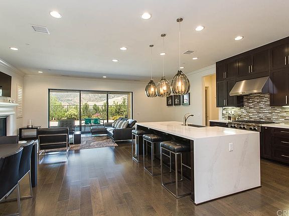 SPECTACULAR AUGUSTA HOME WITH MOUNTAIN VIEWS! Located in the highly desirable "Avila Community" of Porter Ranch. Situated on a quiet cul-de-sac, this gorgeous two story built in 2015 features 4 beds & 4 baths, 3173 Sq.ft of living space. This residence is illuminated with natural light and the delightful foyer is highlighted by an elegant spiral staircase and Venetian glass chandelier, welcoming you to an impressive great room with custom maple morro bay wood flooring, fireplace and energy efficient shutters. The inviting gourmet kitchen features Kitchen Aid appliances, calacatta nuvo caesarstone counter tops and italian marazzi backsplash with stainless steel accents. Waterfall island with built in dishwasher and trash compactor. Guest bed located in the 1st floor has it's on walk-in-closet and full bath. Three additional beds and loft upstairs include a Master Suite that is sure to impress, The Master bath is highlighted with Italian Marazzi Mosaic Tile, an oversize soaking tub, massive separate shower, and spacious walk-in closet. Beyond the great room downstairs are floor to ceiling stacking doors which open to an inviting backyard with an indoor/outdoor feel. The backyard has paver bricks floors. The community offers a pool, spa, cabanas and banquet room. Located within the acclaimed PR Community School and near "The Vineyards," which will feature restaurants, theater, boutique shops and more!