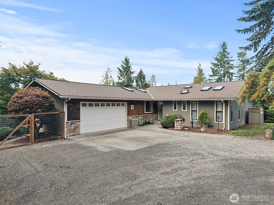 Escape from the City life to your stunning Country Estate situated on 5 acres. Rare secluded 4-bedroom rambler awaits you. Fantastic Dream kitchen with Bosch Appliances and great room openness with lots of natural light! Great room leads to rustic Living space with stone fireplace/French doors to spacious patio. Primary suite on the main level offers privacy/luxury. Lower level you will discover a second ensuite and separate living space for MIL or guest suite with 2nd living room/fireplace and patio. Multi-generational living is possible. New flooring throughout tile, granite and travertine in baths and Kitchen. Barn/Shop has multiple uses/6 covered parking spaces, Chicken Coop/greenhouse/2 outbuildings/RV storage.