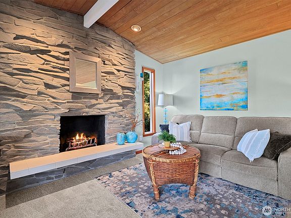Stone fireplaceLots of natural lightGreat room opennessRustic living spaceRv storage
