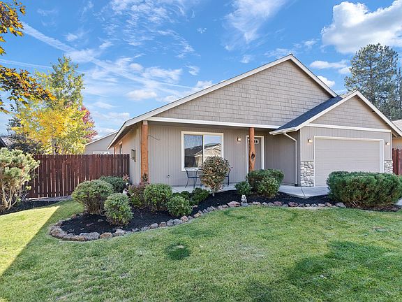 This charming 3 bedroom, 2 bath home is move-in ready! Situated in the Paulina Peaks neighborhood in SE Bend, The vaulted ceilings with skylights in the main room create a great room feeling with plenty of light, as the living opens to the dining room and kitchen. The office nook with built in desk could be a perfect work from home space. New LVP throughout the home. Outside you will find a manicured, landscaped front yard and a low maintenance back yard with a huge paver patio with walking paths to the side yards. The water feature creates a peaceful, private setting for entertaining. This location is convenient to schools, shopping, and restaurants and this property is a must see.