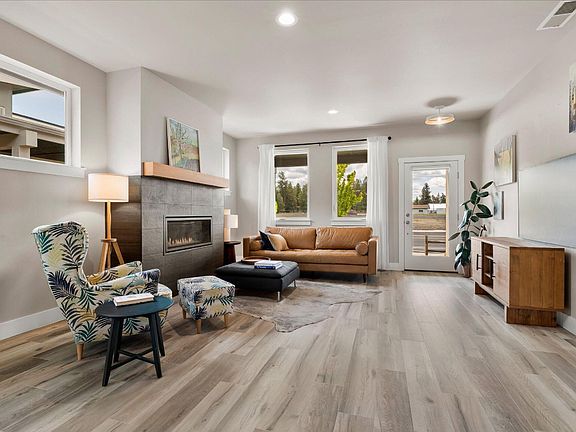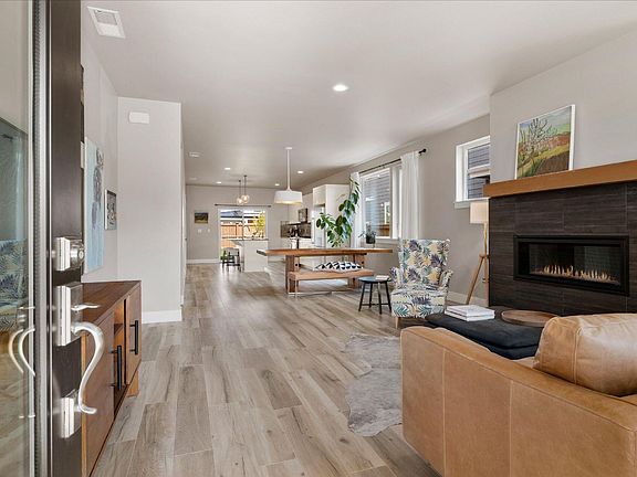 Modern convenience and comfortable single level living. Built with attention to detail by builder Woodhill Homes, this home offers High End Finishes, an Open Floor Plan and plenty of room for entertaining. Large Great Room/Kitchen/Dining Area features a gas fireplace, an abundance of windows and Natural Light. Primary Bathroom has a beautiful floor-to-ceiling tile shower, solid surface vanity, and large walk-in closet. Sliding doors lead to a covered patio with a cedar fenced yard. Energy-efficient construction, dimmable lights throughout, central A/C, a utility/mud room, a two-car garage with alley access, and all appliances.