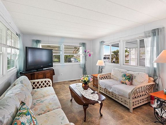 Are you in search of a Florida lifestyle in a resort-style 55 + aged community? This cozy 2 Bed / 1 Bath home comes equipped with an oven/range, microwave and fridge. It's nice vinyl and tile flooring offers this home a clean spacious look throughout. Other feature also includes cental A/C, smoke alarms and built- in cabinets. With lots of window-to-window lighting, you`ll also love having that extra space the enclosed porch area gives, which is under A/C. Some recent upgrades include NEW 2021 kitchen and bathroom plumbing. But that's not it! Living room, bathroom, kitchen and bedrooms have NEW 2022 Double Impact Windows as well as hurricane shutters to protect all of home. Water heater is also NEW. Once outside, you'll enjoy the nice patio area, as well as the well-maintained landscaping & trees. With plenty of parking as well as a carport and a shed for extra storage needs, what else can you ask for. Prestine and filled with natural light, this home is ready for an owner who is ready to enjoy the warm climate and friendly neighbors in this active community. A must-see home for those who want that Florida lifestyle life. There's nothing like nature's amenities! Estero Bay Village is located in an inviting river setting. Estero Village is a gated, pet-friendly manufactured home community located on the Estero River and close to a number of beaches. The town is sandwiched along Florida's Gulf Coast between Naples to the south and Fort Myers to the north. Estero is listed as one of the best places to live and retire in Lee County. Living in Estero offers residents a suburban feel, with numerous restaurants and parks. Water sport community including Boating, Kayaking, 20 Minutes from the Gulf of Mexico, Boat Slip for rent and FREE Boat Storage. Don't miss out on this adventurous and relaxing water opportunity!