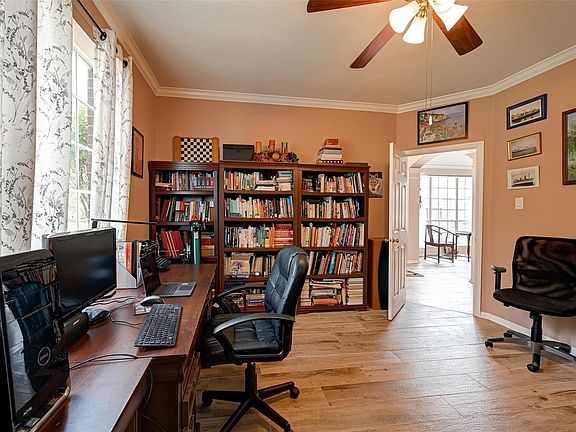 Welcome to this beautifully updated 2-story home in the heart of Kelliwood, offering 4 5 bedrooms and 4 full baths. A downstairs office can easily serve as a guest suite or fifth bedroom. Inside, enjoy wood-look tile and hardwood floors, granite counters, a stylish backsplash, stainless appliances with gas cooktop, water softener, reverse osmosis, and upgraded electrical with dimmers and fast-charge outlets. The spa-like primary suite boasts a rain shower with body jets, soaking tub, and a spacious walk-in closet. Step outside to your private oasis with a sparkling pool, waterfall, and updated fence perfect for relaxing or entertaining. Extra features include a finished attic for storage and a garage sink with hot water access. Zoned to top Katy ISD schools with quick access to Grand Pkwy and I-10. This home has it all schedule your private showing today! Lawn service included.
