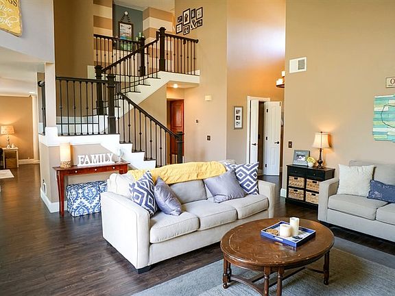 Beautiful light and bright, Cul-de-sac home in Plum Canyon. Rich, dark wood laminate floors throughout the downstairs & stairs. Downstairs bedroom (being used as an office) has double door entry & carpet. Full bath downstairs with subway tile floor, granite counter and full shower. Formal living room boasts fireplace & huge sliding doors to your back yard. Dining room with extra high, white wainscoting and crown molding. Kitchen is open to the family room with a sit up breakfast area, plenty of storage and counter space, Viking stainless dishwasher & 4 burner stove/oven. Family room opens to back yard with crown molding. Extra thick baseboards throughout downstairs. All bedrooms upstairs have neutral carpet & crown molding except for master. 2nd bathroom has new tile floor, tub and shower combo, extra high white wainscoting. Master bedroom has cathedral ceilings & his and her closets. Master bath has double sink, shower and extra large tub combo with new tile floor. Nest thermostat, new furnace last year and new a/c condenser 3 months ago. Fully gated dog run in a pool sized back yard with lots of grass and paved patio. Sink and w/d hookups in 2 car garage with rafter storage and some built in's. This home shows pride of ownership, a must see. NO HOA!