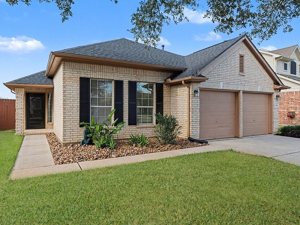 You will adore this One Story, 3/2/2 w/No Rear Neighbors, Original Owner, Newer Roof (Aug. 2024), New Luxury Vinyl Flooring, Newer Paint Inside and Out, 4 Sides Brick, Sprinkler System. The Open Split Floorplan is Well Maintained offering Neutral Finishes all ready for you now! You will enjoy Gas Cooking and All Appliances Included (Washer/Dryer and Refrigerator), 42 Inch Cabinets, Breakfast Area and Views of Back Yard and Patio. New Shower Door in Primary & Separate Jet Tub, New Kitchen & Primary Bath Faucets. Gutters on Front of Home. Garage Door Openers. Large Rear Patio to Enjoy spacious, private back yard and a shed. Conveniently located with easy access to I-45 and 99 w/nearby shopping, dining. Easy commute to Exxon and The Woodlands.