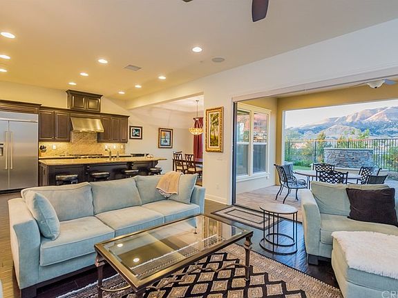 STUNNING MAYBERRY HOME WITH MOUNTAIN VIEWS! Located in the highly desirable area of Porter Ranch is the newly built exquisite gated "Avila Community." Situated on a quiet cul-de-sac, this gorgeous 4 bed & 4.5 bath residence is illuminated with natural light and has custom wood flooring. The captivating foyer is highlighted by an elegant spiral staircase and crystal chandelier, welcoming you to an impressive great room w/ fireplace and surround sound. The inviting gourmet kitchen features Kitchen Aid appliances, granite counters / backsplash, and large center island. Bedroom located on the 1st floor is perfect for an office or guest bedroom. Three additional bedrooms and loft upstairs include a Master Suite that is sure to impress, with beautiful coffered ceiling and sliding door that leads to a master suite deck offering breath-taking views. The Master bath is highlighted with custom marble, an oversized soaking tub, massive separate shower, and huge walk-in closet. Beyond the great room downstairs are floor to ceiling stacking doors which open up to a luxurious lounge area with an indoor/outdoor feel. The backyard with an eye-catching water fountain and built-in BBQ is your private oasis. Relax, unwind, or entertain your guests while you take in the magnificent mountain views. The community offers a pool, spa, cabanas and banquet room. Located within the acclaimed PR Community School and near "The Vineyards," which will feature restaurants, theater, boutique shops and more!