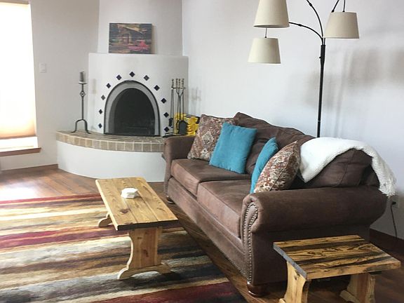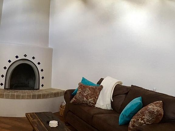 One car garage + driveway, elevated deck with unobstructed sunset view, kiva fireplace, abundant natural lighting in living room/dining area- has vigas & raised ceiling, established neighborhood. One mile from hospital, half block from post office & public transportation, 1 block from grocery store & restaurants, Starbucks, & Wells Fargo, just 4 miles from plaza, 2 miles from Trader Joe's.