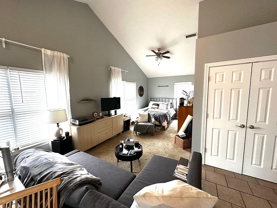 Cozy carriage house in the bustling Kennedy King Neighborhood. Cool, roomy studio with private entrance thru 1-car garage. Nice finishes, Vaulted ceiling with ceiling fans, great natural light. Prime location 1 block from King Park and short walk to Mashcraft Brewery, Tinker Coffee and some great restaurants (Bocca, Baby's, Loco, Goose the Market). 1 mile from Bottleworks and Mass Ave. Great value for private downtown living (no shared walls).