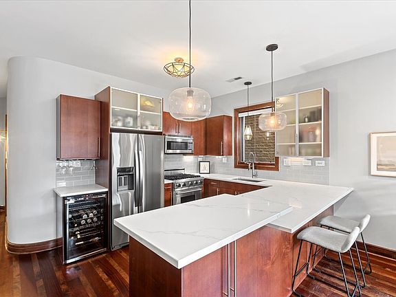 Welcome to your private urban retreat in the heart of Bucktown & Wicker Park! This boutique ELEVATOR building checks every box for comfort, convenience, and style. Step inside to an abundance of natural light from west-facing windows and a spacious private balcony. The open-concept kitchen and living area is the perfect spot to entertain friends and family. The chef's kitchen was thoughtfully updated in 2020 and features white quartz countertops, stainless steel appliances, under-cabinet LED lighting. Additional highlights include a Viking range, beverage fridge, and a spacious walk-in pantry. The primary suite has plenty of room for a king-sized bed, a generous walk-in closet, and a fully renovated bathroom with dual sinks, quartz countertops, and a 6-foot shower with frameless glass doors. With no shortage of storage, the second bedroom also has a walk in closet, and the unit comes with a large and secure private storage cage. This home also includes TWO assigned exterior parking spaces in the gated and secure lot. The building itself offers unmatched amenities, including a BRAND NEW common area rooftop deck (September 2025) with sweeping skyline views, and guest parking spots exclusively for guests of the residents. Just steps to Bucktown Athletic Club, the blue line, Starbucks, La Calombe, Barnes and Noble, the 606, Go Grocer, Wicker Park farmers market, and more!